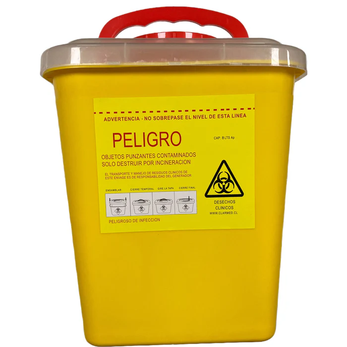 Los contenedores plásticos para eliminar material cortopunzante permiten minimizar el riesgo de contagio con diversos virus como el virus del SIDA (V.I.H.) y el de la HEPATITIS, entre otros, los que pueden transmitirse por medio de cortes o pinchazos con objetos cortopunzantes contaminados con sangre u otros fluidos corporales.