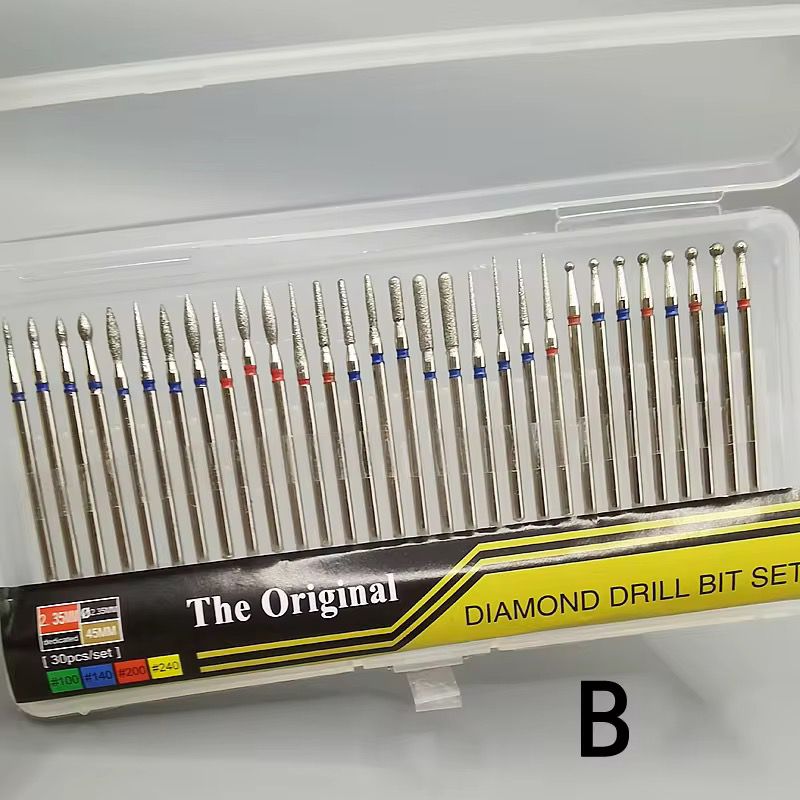 Juego de brocas de diamante para manicura y pedicura, también conocidas como fresas diamantadas, que se utilizan con un torno eléctrico para uñas.